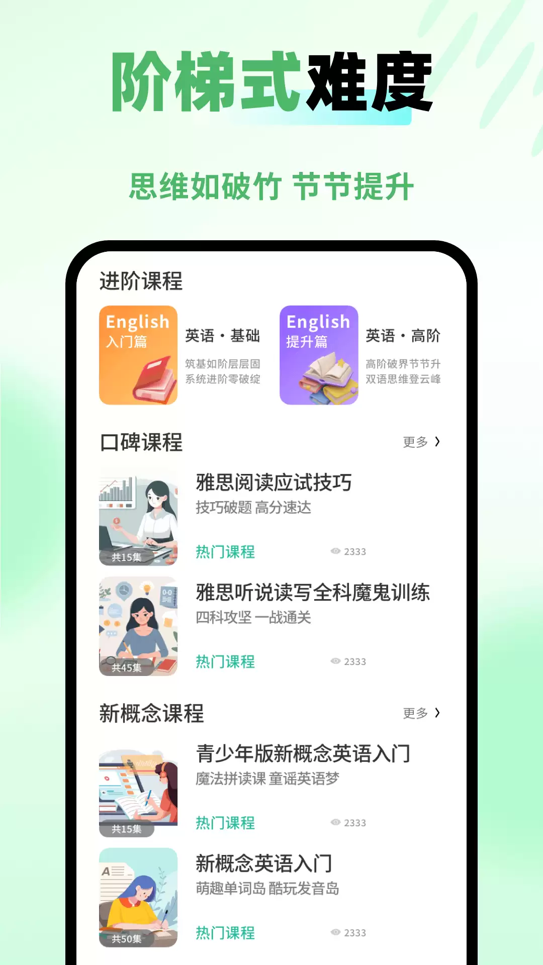 基于CEFR语言能力框架搭建分层课程体系,内容纵贯K12阶段、大学四六级考试、海外升学及学术交流场景。针对词汇输出薄弱问题,每日推送主题式英文资讯短文(含科技、文化、社会热点),配套语音领读+影子跟读+复述检测三阶训练链,提升语言组织效率与表达流畅度。