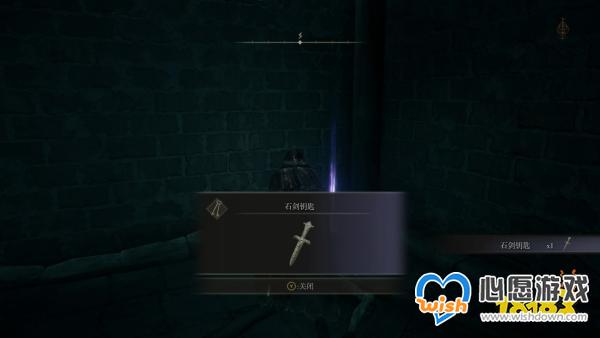 来到房间左侧的平台后在角落的尸体上找到一把石剑钥匙。