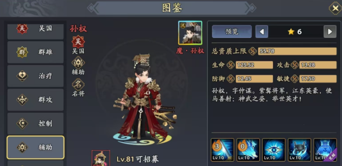 最后是辅助位置,主要是负责治疗,还有增加buff,那比较好用的就是孙权,还有郭嘉。郭嘉的辅助还是很有针对性的,大招不仅可以回血,还可以百分百消除队友身上的中毒或者是沉默效果,延长队友身上的增益状态,时间可以让buff的效果更加持久。孙权则主要侧重于群体辅助,具备一个群体治疗的能力,可以把自己身上的增益状态全部都复制给队友,而自己身上的buff也就会变得越来越多,队友就可以拿到更多的加成。