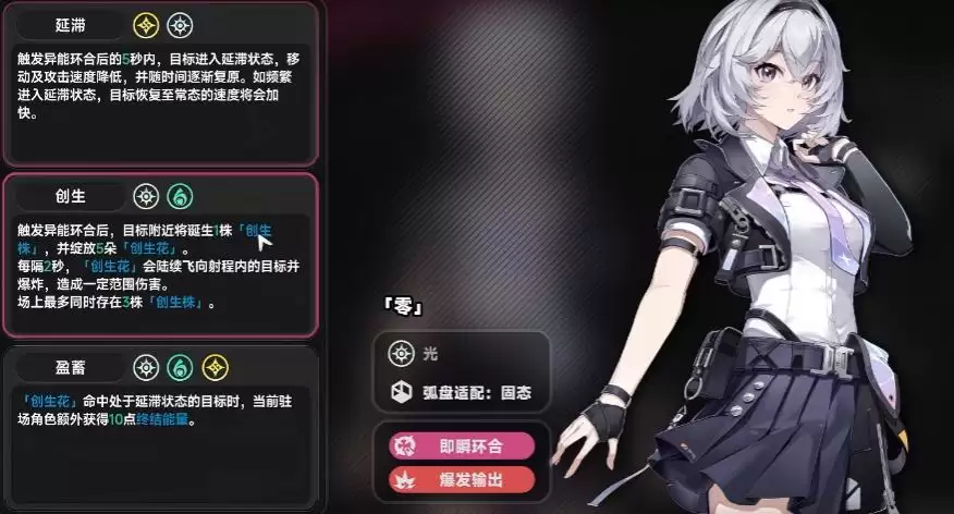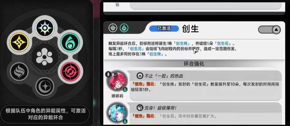 光+相+灵,盈蓄,回能类的,如果创生花命中处于延滞状态下的目标驻场角色会获得额外能量。