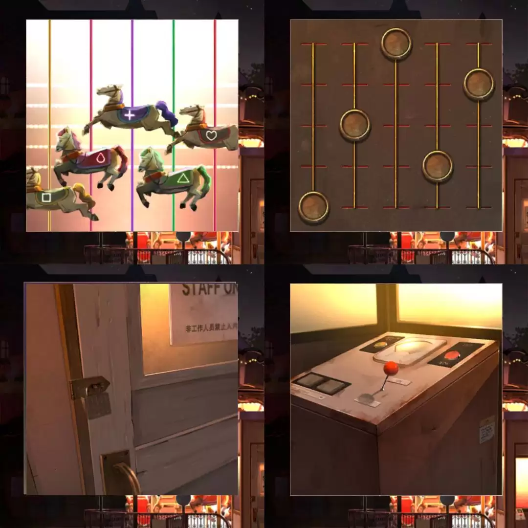 在锁上输入这个密码,操作室的门就开了。进去之后,找到那个显眼的拉杆,用力拉下,沉睡的旋转木马便会重新启动,灯光音乐随之而来。