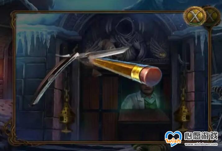 2、在修道院找到了断的铅笔,用剃须刀将其削好,这是爱德华需要艾米丽准备的,他要画一张天线草图。