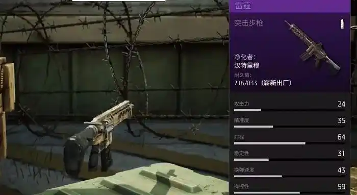 雷霆这把突击步枪在游戏中是一把火力极为强大的步枪类枪械了,武器的操控性足足有59点,这个数值也足以说明武器的可使用性, 此外,雷霆的攻击有24点、射程64点、换弹速度搞得43点,可以说这把武器在中远距离的武器中队很多枪械都有着极为不错的压制效果,玩家若是喜欢伤害高的武器,一定要试一试它。