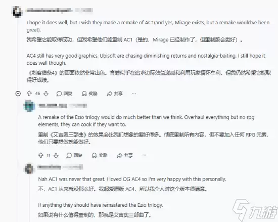 社区观点呈现明显两极分化。部分玩家看好育碧借此翻盘,他们认为厂商本身具备扎实研发能力,只要放弃过度逐利的制作思路,就能挽回口碑。也有玩家认可重制的画面优化与内容还原,认可这款经典老作的新生价值。