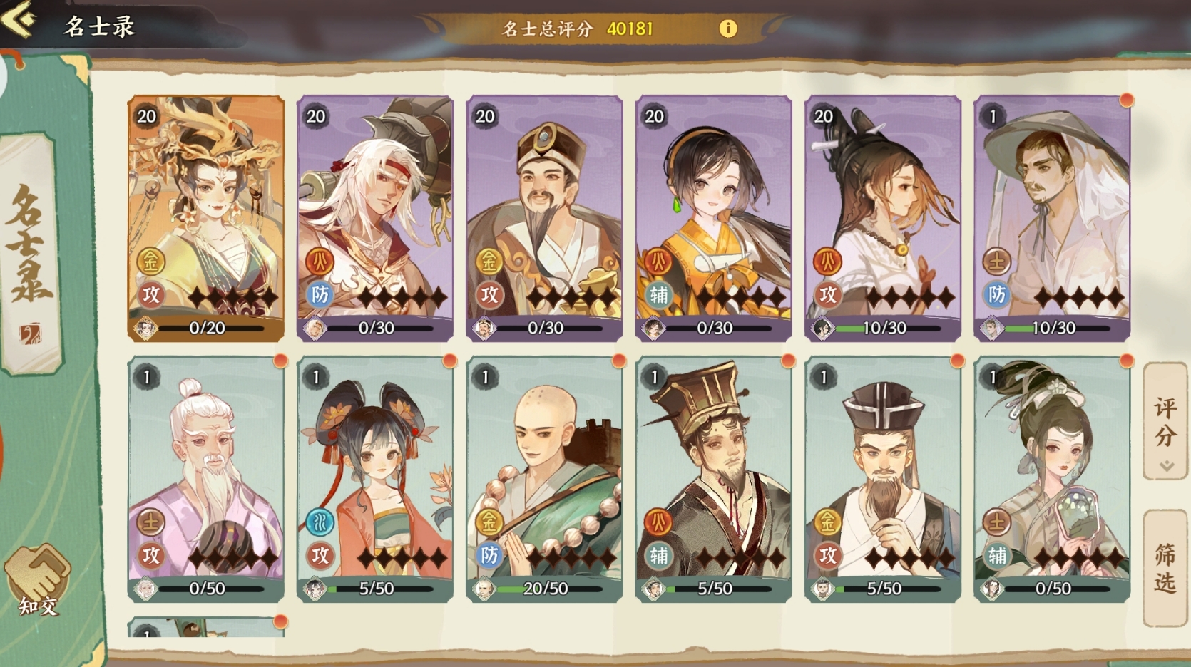 此外,人们还能在华夏绘世录里通过拜访来让各朝代的名士们加入自己的队伍,并且它不光有能抽到所有品阶名士的普通拜访卡池,也有可让人们抽取单一属性的五行拜访卡池,让各位能更加轻松地去完成自己队伍的组建。名士们在上阵后,还会根据阵容中拥有同一属性的人数来获得阵容加成,作战潜力更为出色。而且此作的养成难度特别低,资源给得很足,且每项资源都有对应的获取渠道,还能在拿到更好的名士后,使用重制功能来回退之前投入的养成资源,令新获得的名士能更迅速地完成练度提升并成为阵中主力。