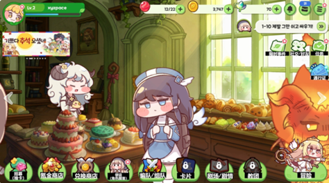 游戏中的女生角色全部都是嘟嘟脸圆滚滚的,每一个角色都有专属的造型。有一些扎着双马尾,拿着小魔法棒,有一些穿的软乎乎的,就好像是小团子,连战斗时的动作也会有一些可爱。不管是看他们互动还是收集角色,总会忍不住让人捧腹大笑。整个游戏的氛围还是比较温暖的,在玩的时候压力也会直接减少一半。可以从玩法这方面来看,不要看画风软萌,内容真的是一点都不单调。在刚刚进入到游戏之后,跟着主线走剧情,主角就会意外的来到异世界,还可以去解锁魔法能力。