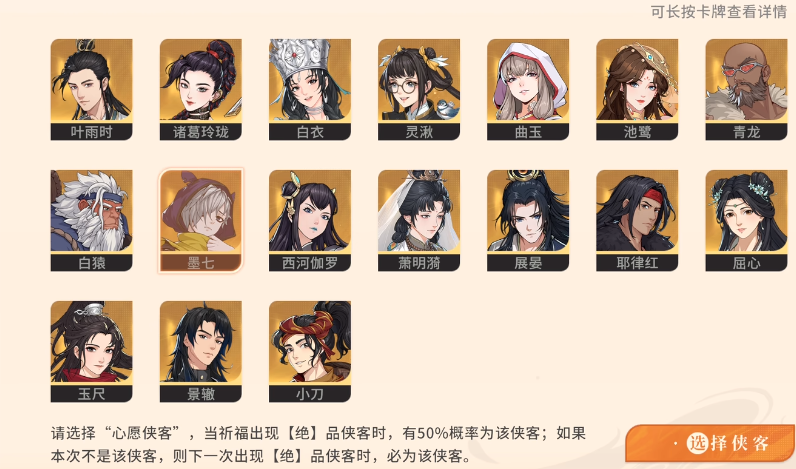 游戏里可以选择的角色很多,每一个的特性都各有区别,首先要介绍的是很多人比较喜欢的诸葛玲珑,角色的名称独特,生命值更是非常强,是在心愿侠客里可以选择的一个角色,还有很大的机会可以直接抽取到角色,诸葛玲珑属于炎系成员,虽然攻击力并没有那么强,但是角色可以防护对手大量的攻击,战斗的时候更有很强的外进防御,常规的攻击力并没有那么优秀,但角色的暴击伤害很高,适合作为整个队伍的辅助,角色开场之后第一个绝招,是不会消耗任何怒气的,每一次使用绝招还能提升角色10%的生命上限。