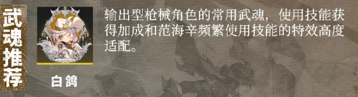 他在最大化自己的输出数值之后,就会变得更好用,而在实战里面,他作为输出枪械类型的角色,在常用武魂上面,一般来说大家都会考虑到频次加快这样的效果,比较推荐的武魂是白鸽这个武魂,白鸽这个武魂在提升效果上面更适配于他的高度释放技能频次,如果大家想要使用范海辛,他的各种连招在这里也要注意,他的蓄力值效果不管是普攻还是技能都是可以给他积攒一定灵能的,灵能在积攒了足够的数值之后,大家可以使用技能1,这个技能的话在攻击上面可以进行加速的效果,且还可以进行转化。