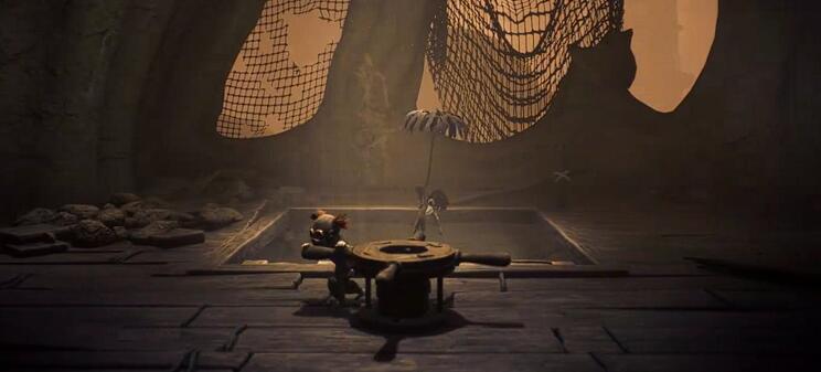 新作核心玩法变为双人合作,摩诺和雷恩技能互补:摩诺能用手电筒照亮隐藏符文,雷恩可挥动雨伞勾取高处道具,也就是说更加考验多人玩法的组队解密机制。旋转餐厅关卡,需一人固定平台,一人趁机跳上移动台阶,合作失误会导致从头再来。关卡设计更注重互动,新增“反重力房间”“镜像迷宫”,探索时能发现前作角色小六的涂鸦彩蛋,暗示世界观故事线就目前曝光来说确实还是有联系的。