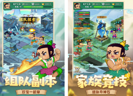 该手游改编自1986年经典剪纸风格动画《葫芦兄弟》,完美再现原作美术风格与剧情片段。玩家可集结七位葫芦娃共同作战,参与组队副本挑战妖魔势力。游戏提供挂机升级模式,也支持通过闯关获取丰厚奖励,兼具轻松体验与丰富的故事推进,让玩家沉浸于童年回忆之中。