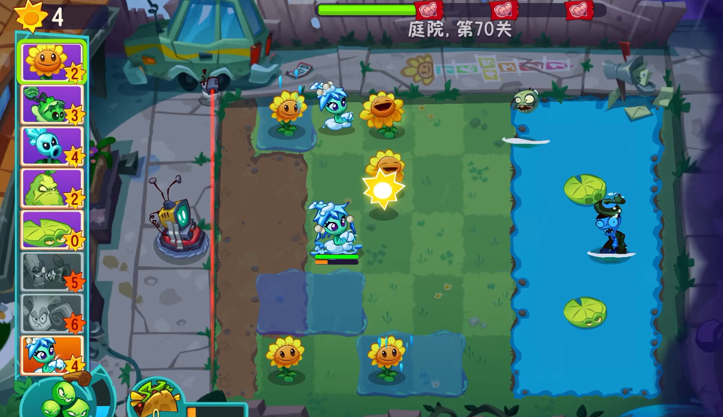 槲寄冰仙子在实战中的表现非常出色,它适用于多种不同的环境,各位可在关卡前期多种一些向日葵来收集更多的阳光,然后一直持续地种植槲寄冰仙子就能完成前期的防守任务,等卷饼好了后就喂给槲寄冰仙子让它觉醒。等关卡进程来到中期后,只要各位在各路径都摆放一至两株槲寄冰仙子,且有两株以上已经觉醒了的槲寄冰仙子,那防守压力就会变得非常小。后续只需根据僵尸的类型和局势来补一些别的植物来协助槲寄冰仙子防御,就能轻松地将僵尸都解决。