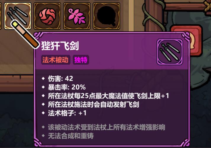 反向施法(飞行速度+4,反向施法):负面效果大于正面,除非玩“龟缩炮台”build,否则学了就是给自己减速,没看属性就乱带法术,这样会拖累输出。