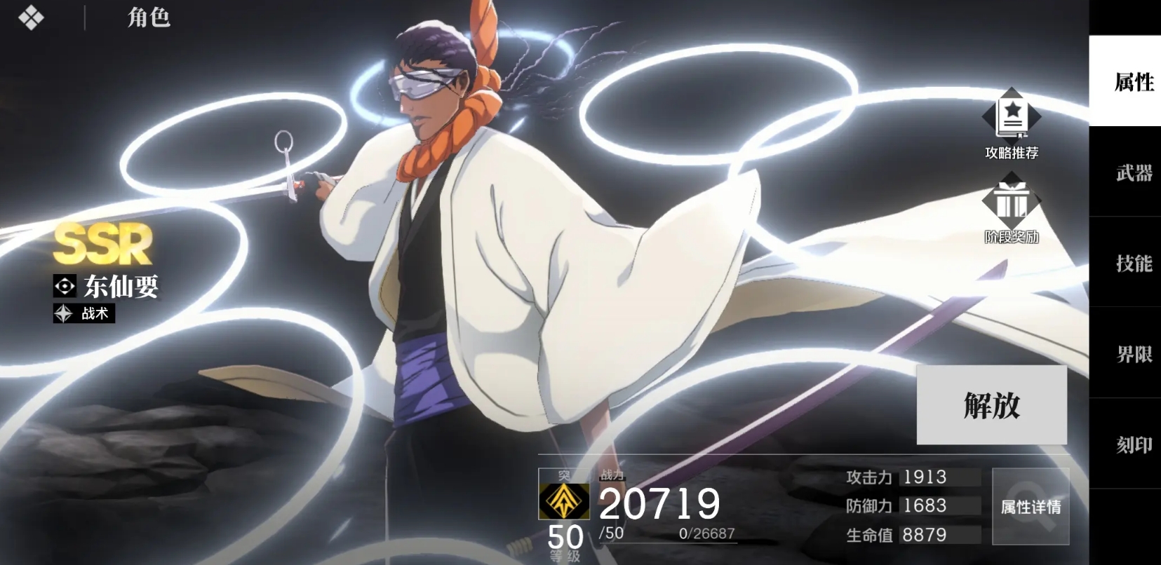 在完成灵压的积累后可长按普攻打出分支攻击,并能在命中后再追加一道大范围高伤害的横扫。其大招共有两段,释放时能直接进入卍解状态,同时获得战技能使用两次的效果,自身的能力也会得到提升,持续一段时间后或主动再按必杀能立刻释放第二段大招攻击。