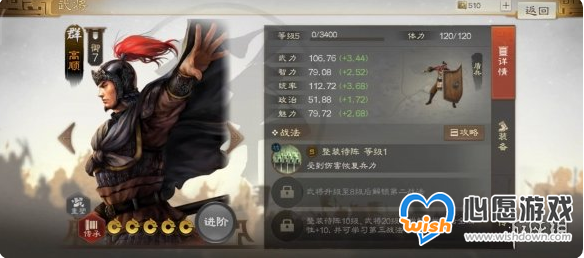 高顺自带战法【整装待阵】不仅能增加自身防御能力,在挨打时还可以回复血量。