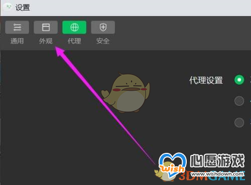 2、在“设置”弹框中,选择【外观】图标进入。