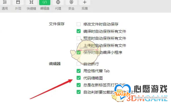 时间:2023-04-08 | 作者:3dm | 阅读:24很多用户在使用微信开发者工具进行开发的过程中经常会看到页面上出现代码缩略图页面,给人一种很繁杂的感觉,那么微信开发者工具怎么取消代码缩略图呢?下面小编就来为大家介绍一下微信开发者工具关闭代码略缩图的方法。