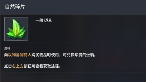 另外像挑战一些特定的对手还能获得布料,对抗野怪的过程中还有机会得到肉块,如果是和精英boss对战,那还有可能得到自然碎片,一般自然碎片都能在游戏里兑换一些比较珍贵的坐骑,玩家可以在游戏里不断积累,等有了足够多的数量之后,就可以去寻找商人兑换,战斗能力不足的玩家,还可以选择去商人那里购买恢复药水,能帮助玩家恢复更多的生命力。