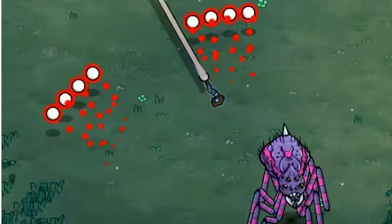 对于刚刚上手的新手而言,在体验这款游戏时就会发现自己并没有办法打得过精英怪,例如巨蛛,这一个精英怪虽然有一些难度,但也没有想象的这么难,生命值是650,其实打起来还是很快的。关键在于要灵活的走位,不要被他堵在角落里面。这一个精英怪就有三种攻击方式,只要摸清楚套路就可以轻松的应对。第1种攻击方式是发射8个弹幕还会分成两个不同的角度,其实就是4个一排中间会有一个空隙,只需要再远一点就可以直接的躲开,那其余的这两种,就等玩家到游戏中去体验一下。
