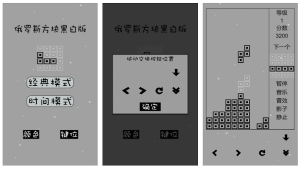 采用经典的黑白色调设计,营造出浓厚的复古氛围。该游戏忠实还原原始俄罗斯方块的核心玩法:不同形态的方块持续下落,玩家需灵活操控其位置与朝向,实现无缝堆叠。完成整行填充后自动清除,并累计得分。支持无尽模式与限时挑战等多种玩法,带来多样化的游戏节奏与体验。