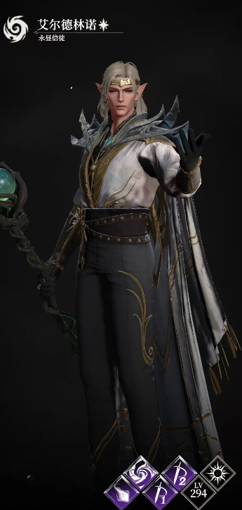 第三个为大家推荐的就是光法,光法这个角色的名字叫做艾尔德林诺,他也是称呼为永昼信徒的角色,目前他在游戏里面外观上真的非常像精灵族的角色,不过他是一个后期上面强度才会上来的英雄,一般是打群体的法伤效果比较强,而且他在定位上面也是一个法师,在功能性上面是比较全面的,他会带来常驻10%的恢复能力,以及在防御效果上面还有一定的护盾,可以保护前排角色,如果大家使用光盾的话,其实在上一个光法两者之间的搭配是非常好用的,他在天赋上面,如果对面血多的话,大家一定要注意加点,一般在攻对面防御以及群体回血的效果上面带来的天赋加成是不一样的,装备上面的话,是比较推荐大家还是搭配回能套的,相对前期来说,其实各个角色在搭配套装上面还能套,基本都是可以使用的。