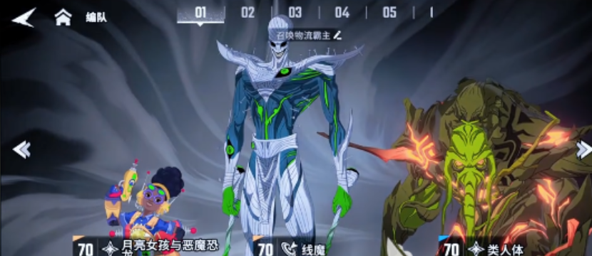 要是前期大家在推图上面想要比较容易的话,这里大家也可以将浩克换成黑白先生,因为黑白先生的话他带来的生存优势还是比较大的,而且还可以增加大家叠增益的速度,所以这个阵容相对来说适合前期大家使用,那么后期为大家推荐的话,还有一个月亮女孩、恶魔恐龙以及类人体来进行搭配的这种阵容,其中的月亮女孩以及类人体的话,在大家前期也是比较容易拿到的。大家参与签到的话,就可以快速集结这3个角色,而且轻松组成阵容,其中角色在召唤效果上面也是有比较强大的能力,并且在后期大家可以通过增益技能来强化这里召化物的输出效果,所以可以打一个人海战术拉满的效果,其中召唤物数量起来的话,这里可以进行以多打少的效果,所以整体能力上面趣味性是比较高的。