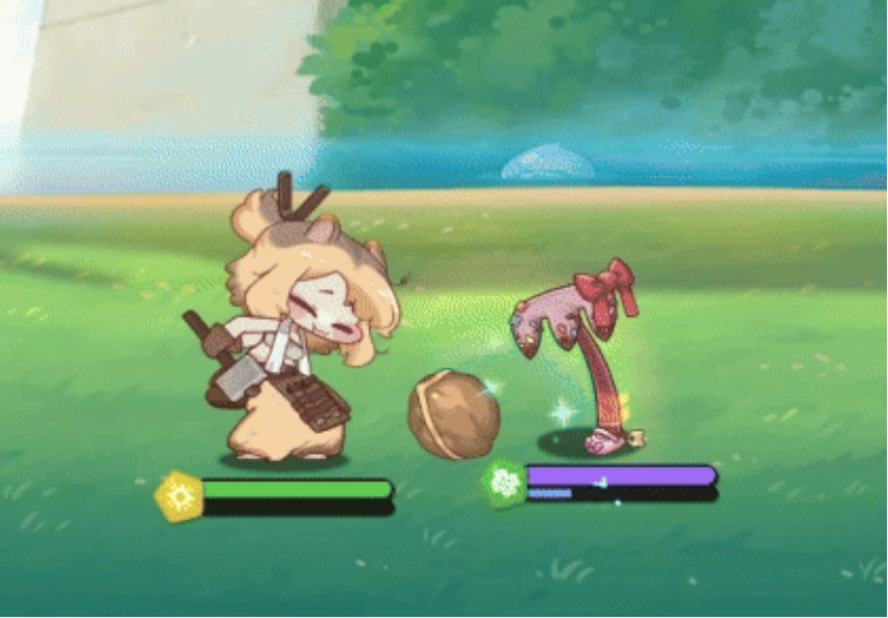 芭娜的普通攻击也不容小觑。她会向最近的对象扔锤子,造成范围物理伤害,伤害量是 140%,还能给予降低所有防御的负面效果,让敌人防御力降低 300,为队友创造更好的输出环境。