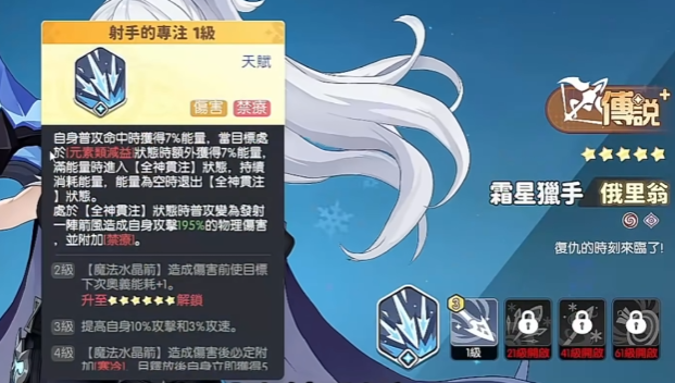 不过俄里翁有个明显的缺点,特别怕被近战贴脸,一旦被敌方近战摸到,攻速会降命中率也掉,攒能量的节奏直接乱了,输出就跟不上了,所以玩的时候一定要注意站位,要么让前排坦克挡在前面,要是不小心被贴脸了赶紧喊队友用控制技能解围,不然很容易从输出变刮痧,实战里用俄里翁关键就是控好能量,开局先别急着放技能,用普攻慢慢攒能量,最好等队友给敌人上了元素减益,这样攒得更快早点开全神贯注上禁疗。看到对面核心要放大招,或者奶妈要抬手回血了,赶紧放奥义技既能打伤害又能控场。
