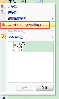 08再点击原来倒三角箭头的地方可以看到菜单选项,选择“从小红清除筛选”就还原了。