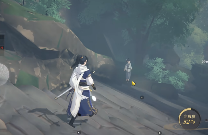 找到对方之后就会进入到楚家庄,在这里同时会设定几个谜题,想解开一个谜题,玩家可以躲在树后,接着不断完成解谜,还需要在游戏里找物品,找到的物品可以多给小女孩,完成挑战之后会进入到光雾林,这是整个挑战中比较重要的,可以先跟着记忆剧情的路线向前,但假如原有的记忆剧情中没有提示,那玩家可以不断点击自己感觉正确的,出错3~4次之后,系统就会自动指引,接着在这里会和师兄对战,可以选择张涅槃心法,可以用这个心法和对手拉开距离。
