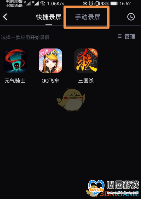 2、进入“录屏”界面之后,点击选择“手动录屏”。