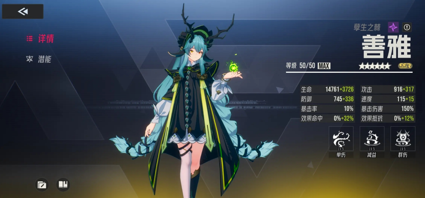 暗雅毒队是在玩家拿到善雅(暗)才能着手进行组建的队伍,其中善雅(暗)作为该队中不可或缺的核心和输出主力,主要为队伍提供快速叠毒和对敌方全体造成高额真伤。另三个队友可选方格斯、梨梨和米娅,通过使用梨梨的拉条能力,让善雅更频繁地打出输出和叠毒,而方格斯则是能为善雅分担一部分的叠毒压力,且他的大招所造成的减速也能变相地令己方获得速度加成,此消彼长之下能令善雅多出不少出手次数。最后,辅助能力出色的米娅可为队伍提供驱散、减伤等增益。
