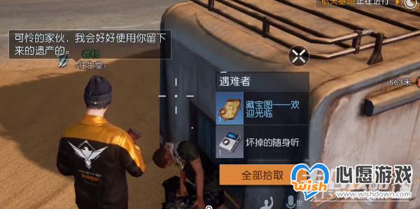 3、靠近遇难者以后,点击搜取就能获得【藏宝图——欢迎光临】。