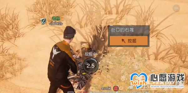 2、在路标找到下图位置的土堆,点击进行挖掘。
