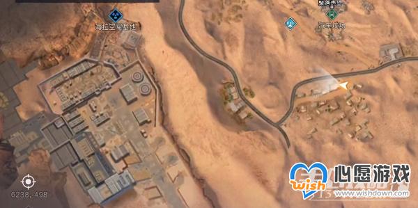 1、我们直接来到地图坐标【6238,-498】位置,然后可以看到金色沙漠欢迎你的广告牌。
