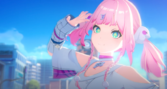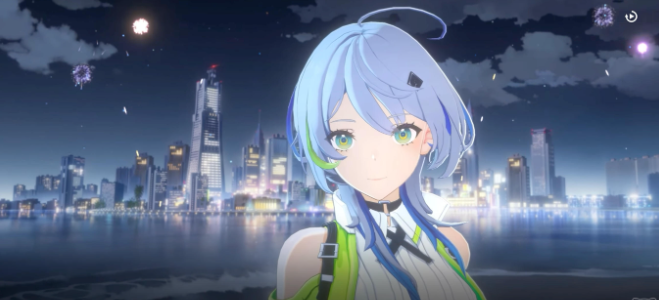 第二个角色叫做光希,光希是一个乐队的吉他手,这个乐队叫做涅莫乐队,也是游戏主线里面经常出现的一个群像乐队,在其中他的个性上面设定的是比较冲动的,所以角色性格火爆,喜欢用各种挑战来对抗遇到的敌人,所以给他设定的是力量属性上面比较强势,她本身的话,是一个贫民区里面出来的女孩儿,因为本身的实力很强,所以后期成为了那片贫民区的掌控者,因为有这样的人设,所以后期在机车驾驶上面还有一类技能,是需要利用音乐节奏以及爆破声来造成追逐效果的,这也是一个玩家比较喜欢的设定,在她进行技能的时候背景音也是比较好听的,所以新手时期很多玩家都会先去体验光希。