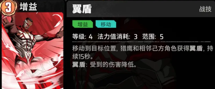 其实猎鹰是非常适合放在物理队里面使用的一个角色,一般在站位上面都是放后方的,他的核心技能叫做翼盾,这个角色使用这个核心技能的时候,可以让自己在减伤效果上面持续15秒的能力,并且同时只要是和他站在一起的友军也会得到这个减伤的能力,如果是在理智数值达到1的情况下,还可以额外提供25%的护盾效果,如果是在理智数值达到3的情况下,额外带来的则是20%攻击力提升效果。