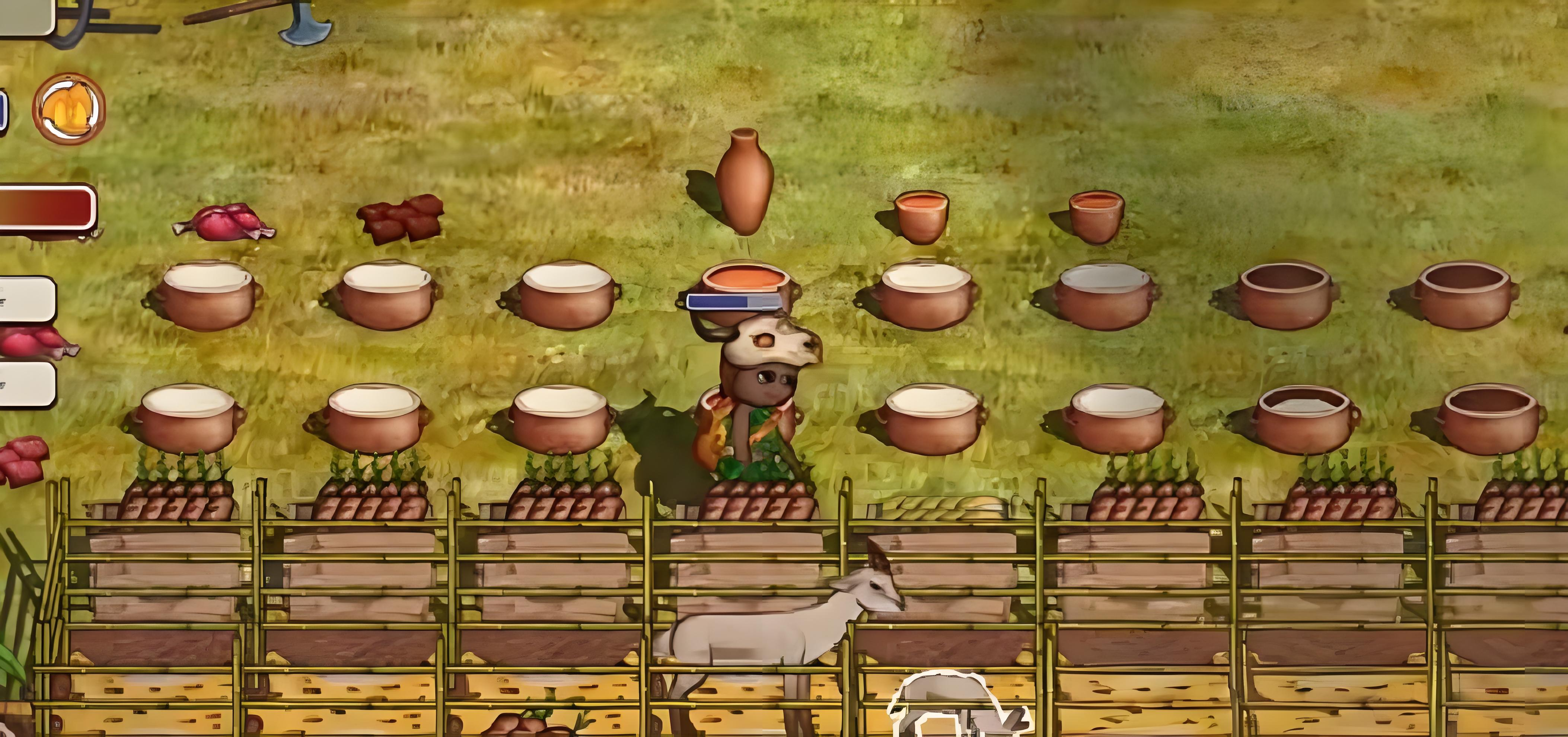 在野外狩猎的时候,玩家看到小羊羔以后直接用弓箭朝着它们进行射箭,只要射中小羊,玩家在直接用提前准备好的绳子把受伤的小羊给拴住,最后就是把自己捕捉到的小羊给运送到部落里面去进行驯化。