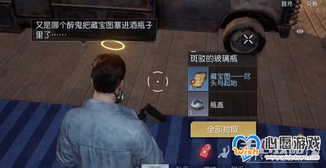 2,到达后,这里是有一辆废弃的汽车,在旁边是有一个玻璃瓶,过去打开它。