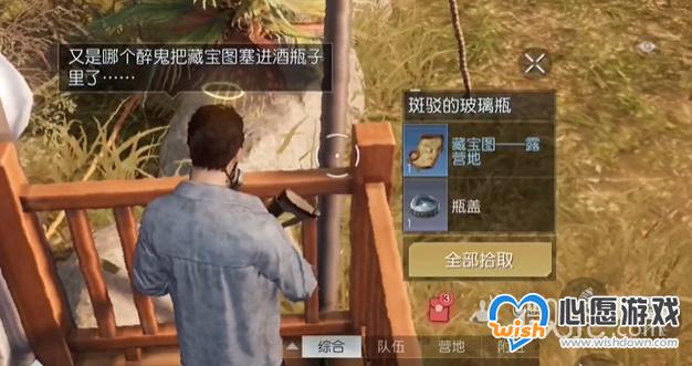 3,接着玩家是需要将这个玻璃瓶打开,可以看到这里面是有着藏宝图露营地的位置。