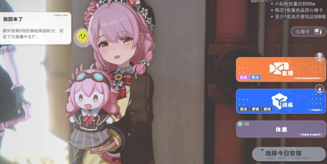 剧情和互动这块也做得挺细,世界观是围绕虚环平行世界展开的,主播们在里面是战斗偶像的身份,主线剧情里会穿插每个主播的专属故事,选不同的对话做互动任务,还能解锁隐藏内容,既能看到他们现实里的人设影子,又能了解游戏里独有的背景,感觉跟主播的联系更紧密了,平时除了养和打,还能跟主播聊天提升羁绊,解锁专属的语音和动作,甚至还要帮他们策划演出活动,从排节目到配合战术都得管,不是光当甩手掌柜,更像真的在帮他们搞舞台征程。