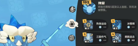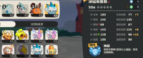 这里还会有一个核心的特性挽留,属于一个灵魂技能,只要敌人身上叠了5层以上的冻结效果,那么他就没有办法被对方替代下去。意味着只要队友可以帮忙去挂冰冻,就可以很稳的站在场上去完成输出和防御,在团队里面如果配合一个带冰冻技能的伙伴,那所产生的作用就可以直接翻倍。重点其实就在于技能的搭配,在经过第2次测试时,精灵已经改了技能,但特性没有什么变化。比较实用的就在于搭配力量吞噬还有加固。