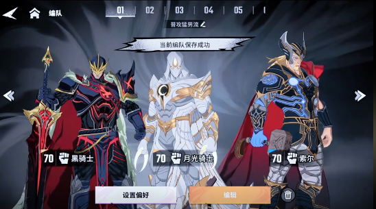 那最后一个阵容自然就是月光骑士,黑骑士还有索尔。如果玩家可以抽到索尔,那无论如何都要准备这一套阵容。玩起来真的是超级爽快,索尔的普通攻击就有一个易伤的效果。黑骑士还可以提升普通攻击伤害,另外还有一个月光骑士,月光骑士就可以疯狂的增加攻击速度。这三个如果可以联动在一起,那可谓是拳拳到肉,无论是打击感还是操作感都是比较不错的,难怪大家都会说很好用。