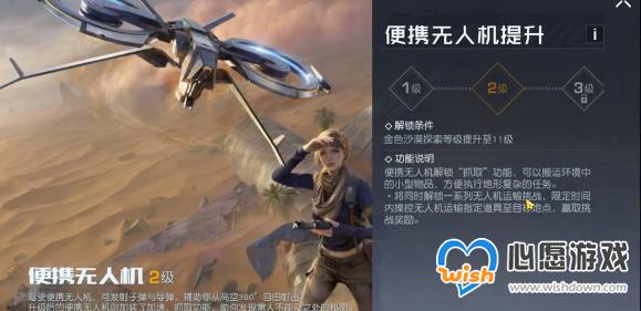 《黎明觉醒:生机》便携无人机解锁攻略:1、搜索等级达到4级可获得沙漠防护服,搜索等级达到6级可获得便携无人机,搜索等级达到11级,可获得便携无人机的抓取功能,这个时候我们才可以抓取高空箱;