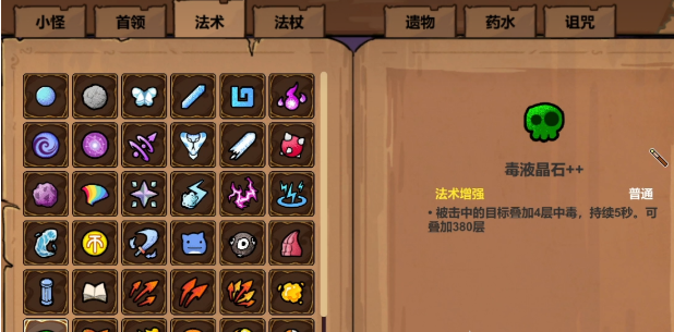 坍缩晶石和闪电链这两个也值得大家关注,可以让法术直接拥有一个坍缩的效果。目标三秒内如果死了,那么还会直接触发二次范围性伤害,要是目标血量直接低于百分比,就算是首领也可以轻松的秒杀。闪电链可以连接同时释放的多个法术,可以针对路上的敌人,然后造成22点额外伤害。搭配毒液晶石的法术效果还是比较出色的,会拥有较好的一个清理效果,可以满足需求。