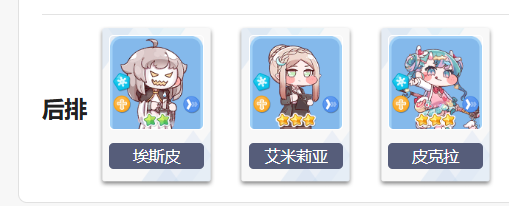 在续航上面的话,科米是可以给后排带来一些分担压力的效果,那么在后排配置上面,大家就可以用埃斯皮和艾米莉亚这两个角色,这样的搭配在辅助定位上面的功能还是比较全面的,埃斯皮不光是在对冰属性的角色上面有一定的增伤,她本身的治疗回血都是必有的,而且在支援效果上面有更多的能力可以运用起来,在维持整个队伍的战斗力上面,这两个后排角色是绝对共用的,且他们两个也是可以协同起来,稳定好整个队伍的。