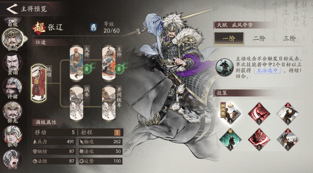 魏国阵营里面有很多强力的武将角色,并且整个游戏的阵容构建也是以为国足为主要的核心,每次对战的时候,玩家都可以选择6名角色上场作战,需要让这几名角色互相互补,才能展现出更强的战斗力,这些角色单一的能力也是非常重要的,在魏国阵营中,比较推荐的角色有很多,首先一个就是李典,虽然这个角色在游戏里单一的表现能力并没有那么优秀,但角色非常擅长治疗和减少伤害,角色的被动技能更是可以直接回血,对战的时候可以利用这项技能帮助队伍以及角色个人不断治疗,能保证整个队伍的续航能力。