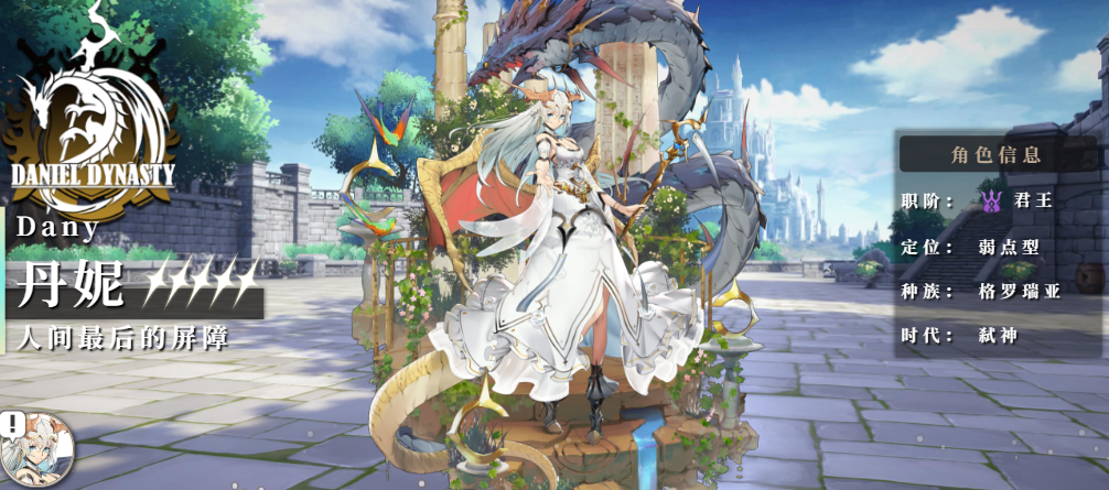 第四位给大家推荐就是丹妮,丹妮这个角色的话,大家可以放在输出的上面用的,但是她在输出上面比较特殊的一点,就是擅长破盾,而且她可以快速找到对面的那个弱点角色进行破盾,所以,可以直接攻击敌方的后排,她对单体的效果上面其实没有群体效果那么好,但是对群的输出上面主要是依靠控制带来更强的能力,而且可以施加破防给对面的前排角色,在技能上面输出的时候还可以给敌人带上沉默影响,如果她的领域展开的话,在这个领域里面进行输出控制效果还可以直接翻倍,此时在技能刷新的冷却时间上面需要一定的时间,所以后期大家给她搭配装备的时候,尽量搭配一些可以减少冷却技能时间的装备。