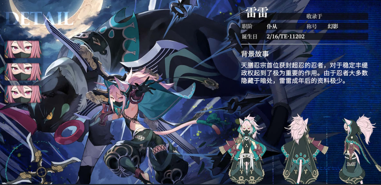 最后为大家推荐就是雷雷,这个角色在行动起来的时候是非常灵活的,所以很多玩家会在一些刺客定位角色对比的时候放上雷雷,她本身的机动属性值就很高,而且在群体攻击的时候也是有一定能力的,如果是对面给到的攻击,她的闪避数值也非常高,建议大家和一些能量恢复角色组合在一起,有这样的阵容的话她在使用技能上面会有更多的释放频次,因为她的大部分技能虽然伤害力很高,需要的蓝量也不少,所以比较适合跟恢复蓝量的角色搭配在一起,做成永动机流派。