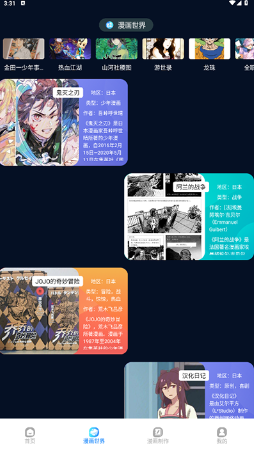 3、在漫画世界页面内有着多样的知名漫画介绍版块;