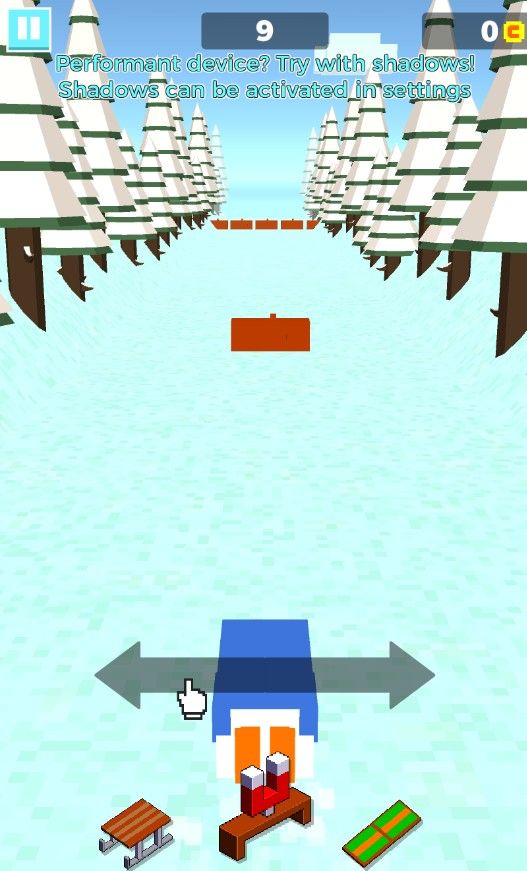 2、不断的拾取道具或是金币,道具可以帮助你更从容的前进,而金币则是你逛商城的资本。